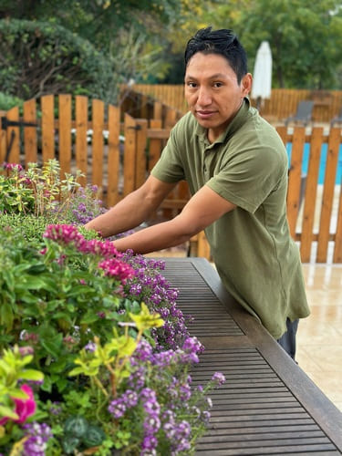 Byron hace que Dondersteen Resort luzca siempre limpio, verde y floreado, cuidando de los parques y caminos, y con su arduo trabajo y dedicación, ayuda a transformar Dondersteen en un auténtico oasis verde de belleza y tranquilidad.